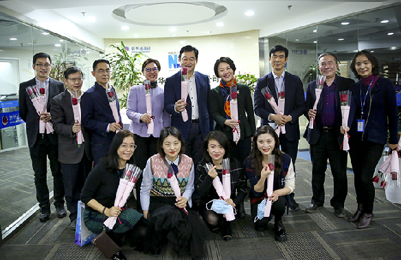 ? 3月8日,舒斌、姍娜同志等公司領(lǐng)導,及工會(huì )、婦委會(huì )向公司女員工送上鮮花等慰問(wèn)品,向大家致以節日問(wèn)候。