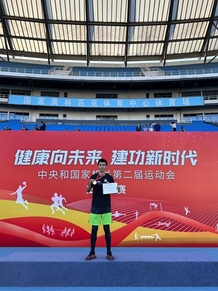 10月22日,中央和國家機關(guān)第二屆運動(dòng)會(huì )在國家?jiàn)W林匹克體育中心體育場(chǎng)舉行。新華網(wǎng)員工代表新華社參加中年甲組跳遠比賽,在賽場(chǎng)上奮勇拼搏,最終取得了第一名的好成績(jì)。