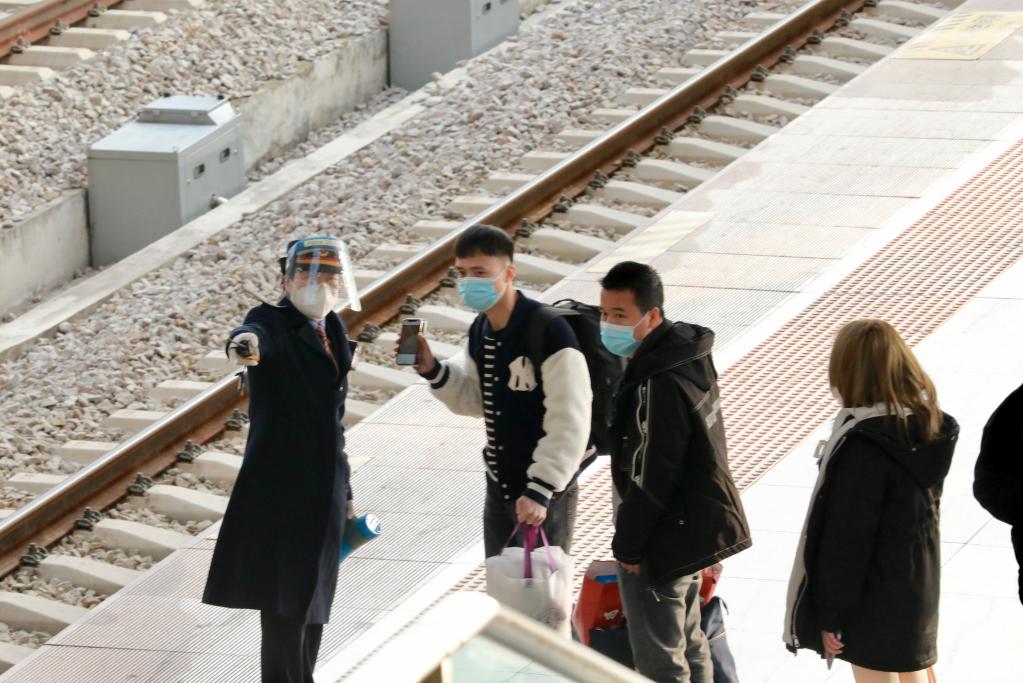 “體溫正?!壁M州西站旅客依次穿過(guò)溫度檢測門(mén),報警器里不斷發(fā)出的提示音,讓人安心。