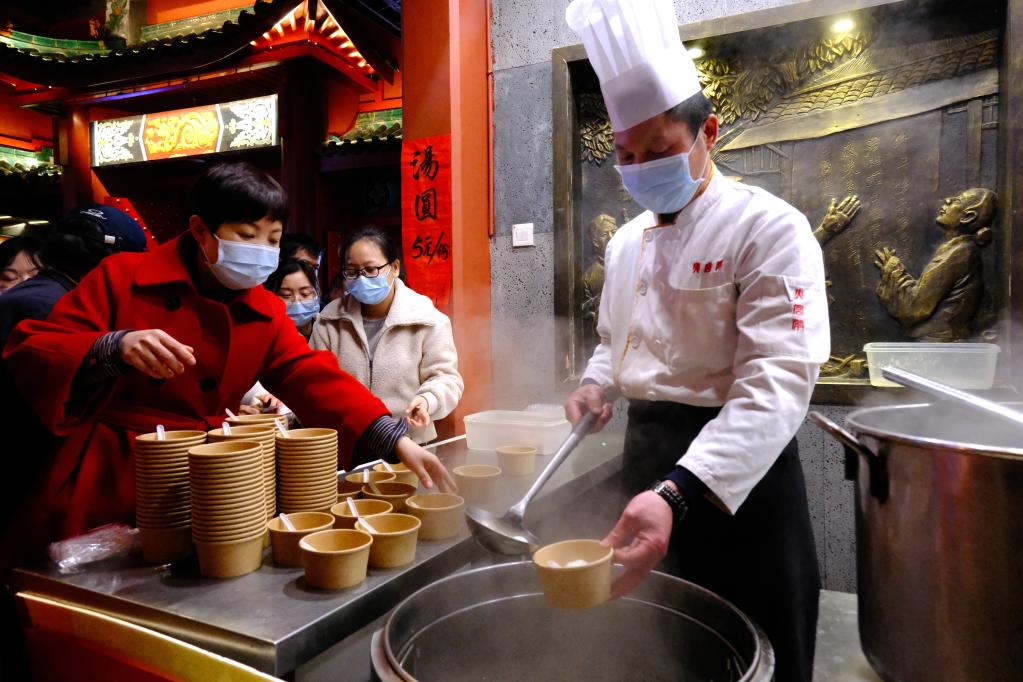 元宵節晚上,長(cháng)沙市天心區坡子街舉辦“吃湯圓”“品湯圓”活動(dòng)。 新華社發(fā)(張瓊 攝)