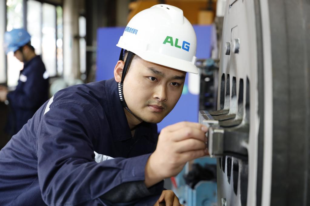 圖為齊林在南南鋁加工擠壓制造中心檢查模具。(受訪(fǎng)者供圖)