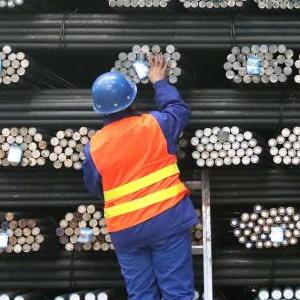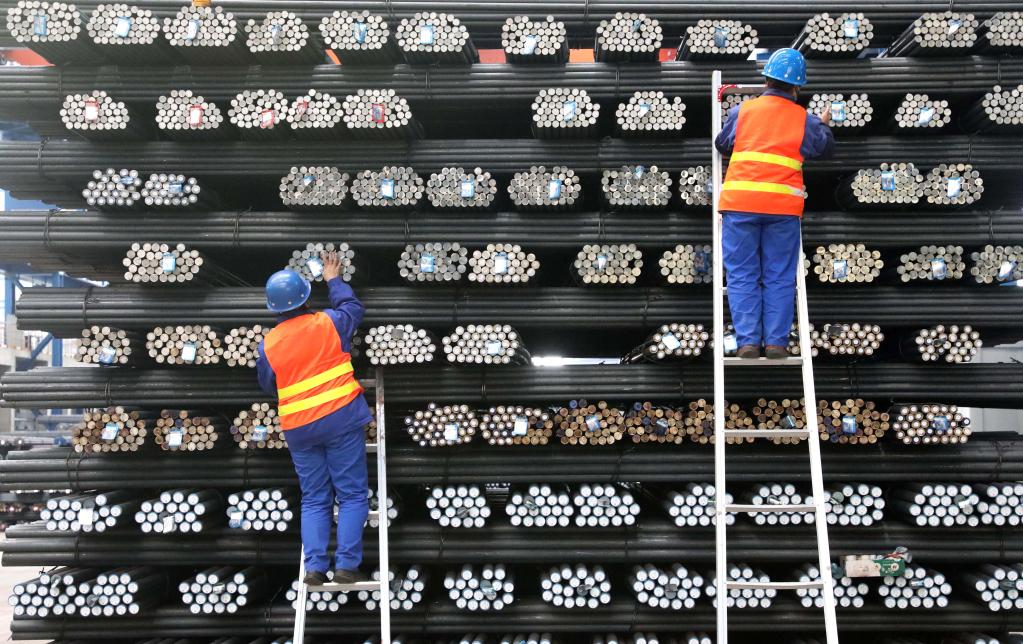 2022年4月19日,在位于承德市營(yíng)子區的承德建龍特殊鋼有限公司無(wú)縫鋼管廠(chǎng),工人檢查無(wú)縫鋼管品質(zhì)。新華社發(fā)(王立群 攝)