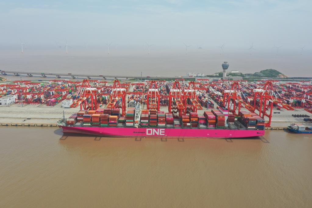 上海市交通委港監處副處長(cháng)屠偉峰介紹,近期因外貿工廠(chǎng)開(kāi)工率不足等原因,上海港集裝箱吞吐量有所下降。4月份,上海港集裝箱日均吞吐量預計在10萬(wàn)標準箱左右,是以往日均13.5萬(wàn)標準箱的75%左右,可以充分滿(mǎn)足貨主在上海港的海運運輸需求,封控期間沒(méi)有發(fā)生“甩箱”現象,有力保障了生產(chǎn)和貿易企業(yè)的供應鏈和物流鏈暢通。