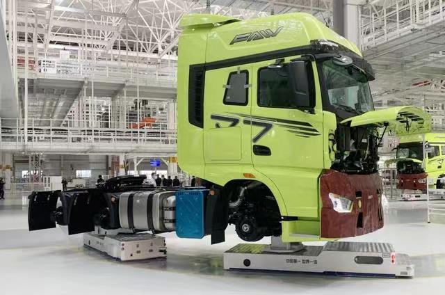 2021年,一汽解放J7智能工廠(chǎng)內,新松開(kāi)創(chuàng )性地將移動(dòng)機器人雙車(chē)聯(lián)動(dòng)轉彎技術(shù)在重載、超長(cháng)物體運輸環(huán)節投入應用,終結了國內重卡裝配線(xiàn)只能“一線(xiàn)到底”的尷尬局面;