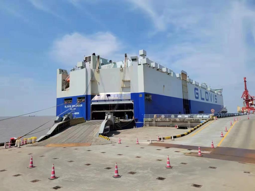 5月11日,特斯拉上海超級工廠(chǎng)復工復產(chǎn)后,首批次整船汽車(chē)出口。(受訪(fǎng)對象提供)