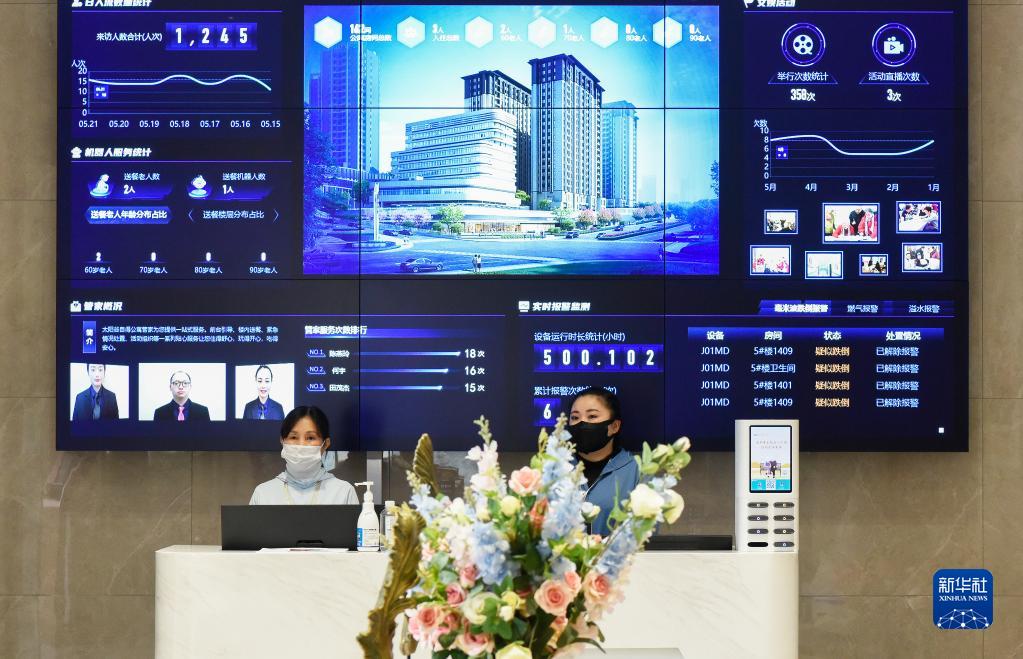貴州省龍里縣中鐵國際生態(tài)城太陽(yáng)谷5G全感知智能康養社區內的養老可視化平臺在運行中(5月23日攝)。新華社記者 劉續 攝