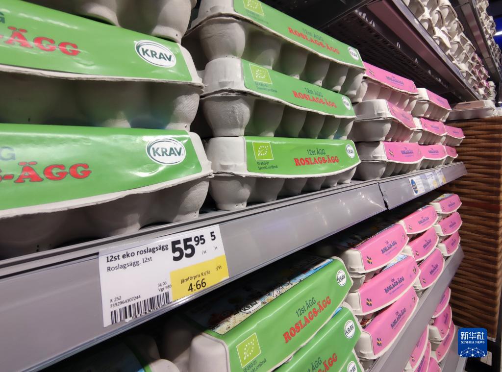 這是4月13日在瑞典斯德哥爾摩一家超市內拍攝的雞蛋?!⌒氯A社發(fā)(魏學(xué)超攝)