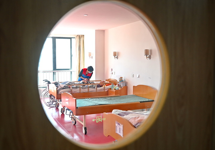 2021年11月25日,青鳥(niǎo)頤居(晉江)養老服務(wù)有限公司護理人員在晉江市社會(huì )福利中心為參保長(cháng)護險的老人服務(wù)。新華社記者 林善傳 攝