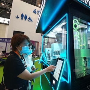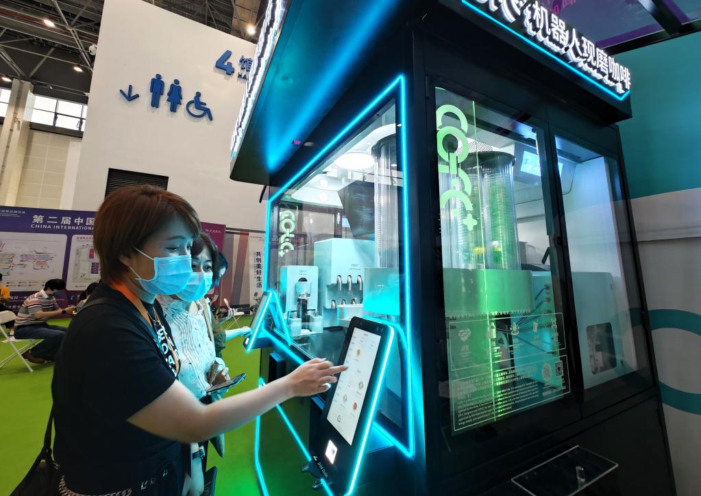 觀(guān)眾在消博會(huì )無(wú)人咖啡亭購買(mǎi)咖啡。新華社記者郭程 攝