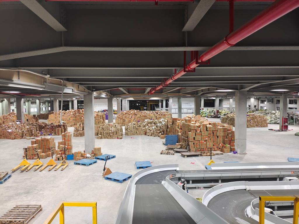 這是“雙11”期間,位于杭州的申通快遞華東分撥中心的現場(chǎng)運轉情況。新華社記者張璇