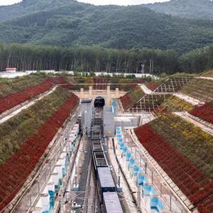 貨物列車(chē)即將駛入位于中老邊境的友誼隧道(2022年11月24日攝,無(wú)人機照片)。新華社記者 胡超 攝