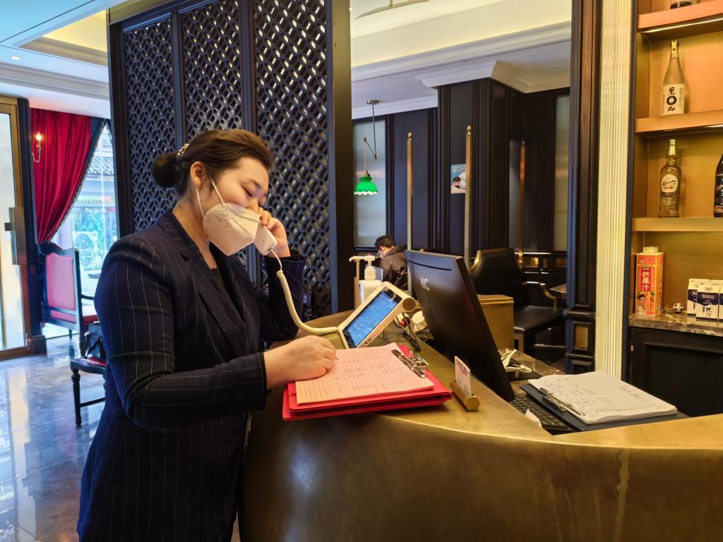 “城南往事”工作人員接聽(tīng)顧客預訂電話(huà)。新華社記者 陳國峰 攝