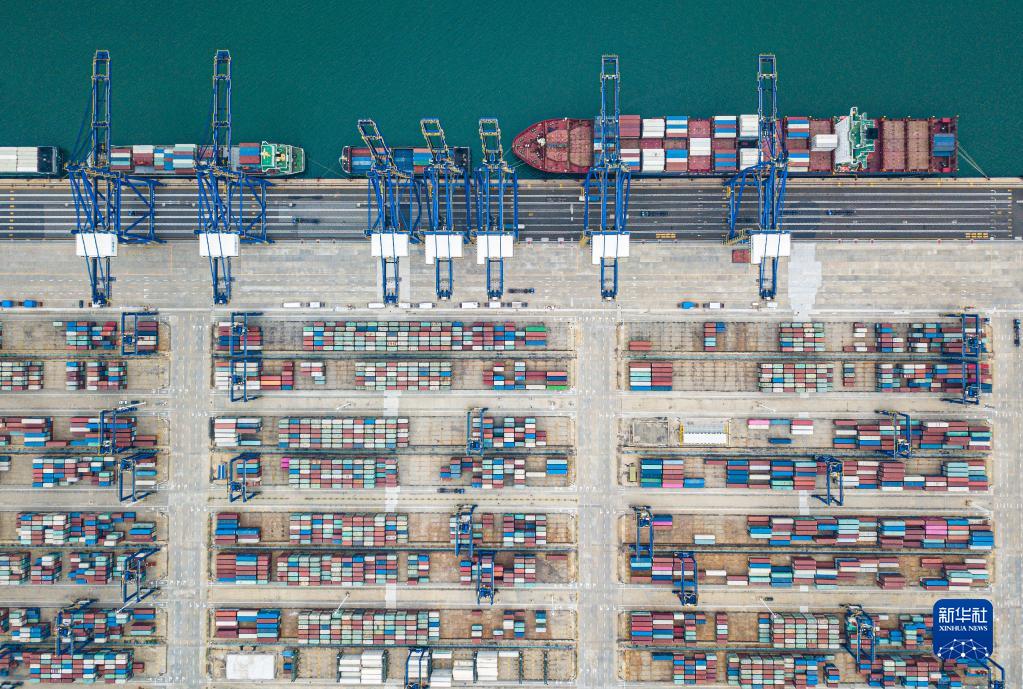 海南洋浦國際集裝箱碼頭一景(2022年11月5日攝,無(wú)人機照片)。新華社記者 蒲曉旭 攝
