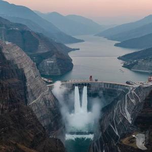 白鶴灘水電站一景(2022年12月19日攝,無(wú)人機照片)。新華社記者 胡超 攝