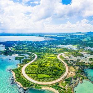 這是2022年10月6日在海南儋州峨蔓火山海岸拍攝的海南環(huán)島旅游公路(無(wú)人機照片)。新華社記者 蒲曉旭 攝
