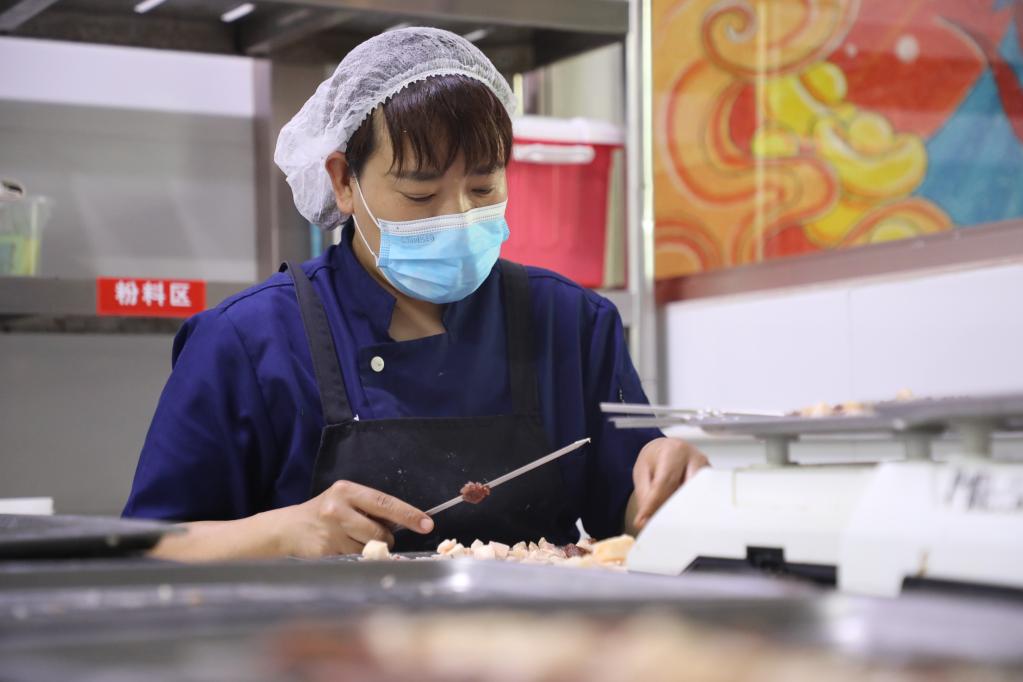 正在加工半成品烤肉的烤肉行業(yè)從業(yè)者。新華社記者唐鐵富 攝