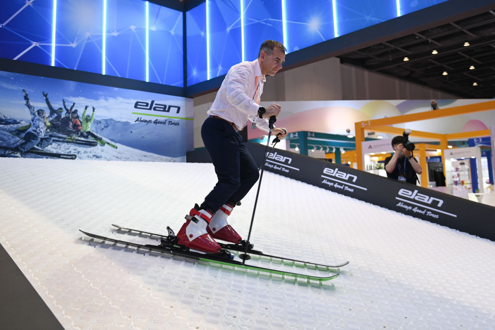 在第三屆中國—中東歐國家博覽會(huì )暨國際消費品博覽會(huì )中東歐展館,來(lái)自斯洛文尼亞的企業(yè)代表現場(chǎng)展示雪具產(chǎn)品(5月16日攝)。新華社記者 黃宗治 攝