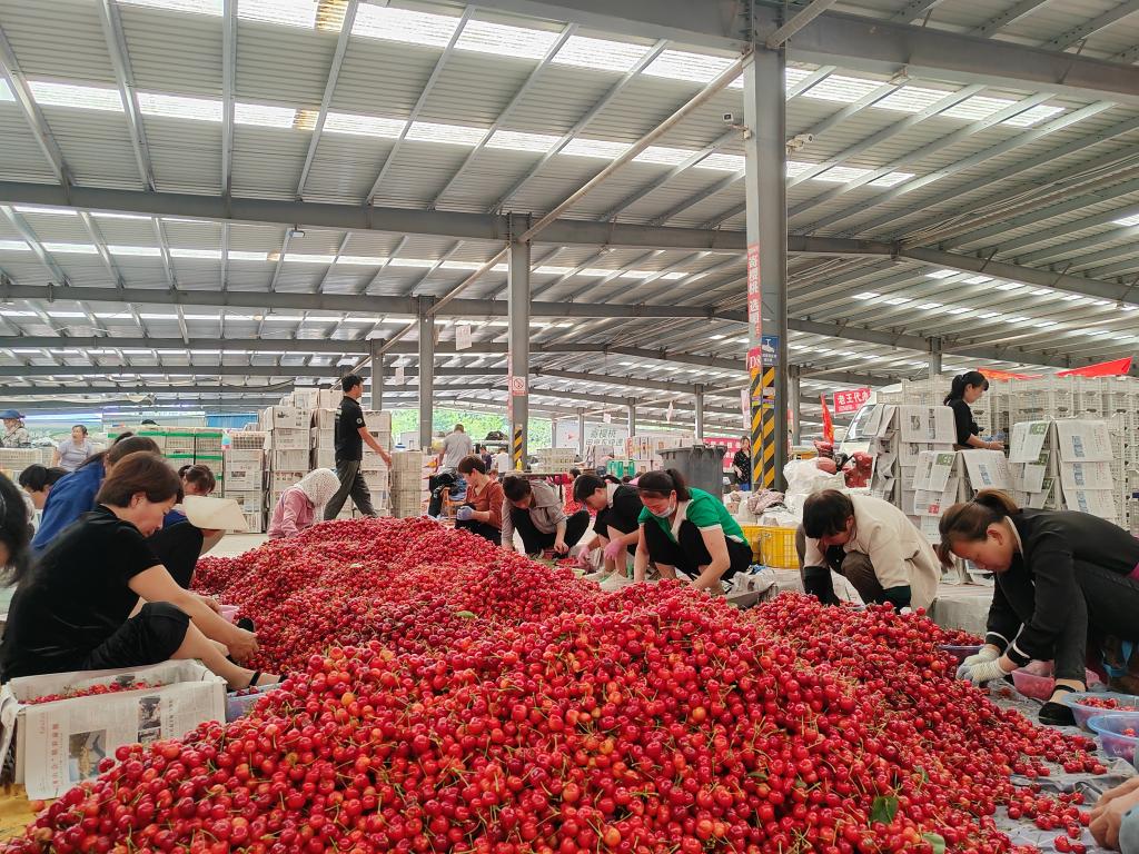 近年來(lái),市場(chǎng)管理方用新思維和新理念運營(yíng)管理大櫻桃市場(chǎng),品控和交易都邁上新臺階?!拔覀兿仁墙ㄆ鹄滹L(fēng)庫,使大櫻桃能夠在運輸中保持較高品質(zhì)。還明確劃分了交易區、分揀區、快遞區等功能區?!惫谙蛴浾呓忉?zhuān)I(mǎi)賣(mài)雙方確定交易意向后,產(chǎn)品迅速進(jìn)入分揀區進(jìn)行分揀,分揀后再由順豐、中國郵政等公司設置的快遞點(diǎn)進(jìn)行打包裝箱,整個(gè)流程速度越來(lái)越快。