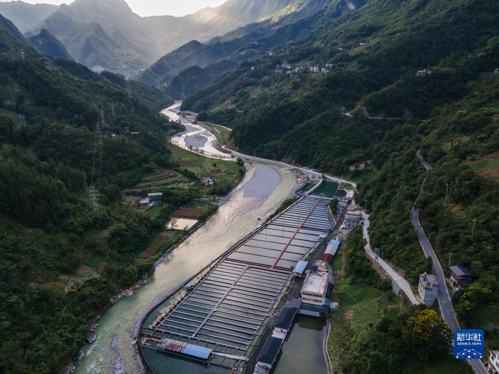 這是9月13日在重慶市城口縣蓼子鄉明安村拍攝的虹鱒魚(yú)養殖基地(無(wú)人機照片)。新華社記者 儲加音 攝