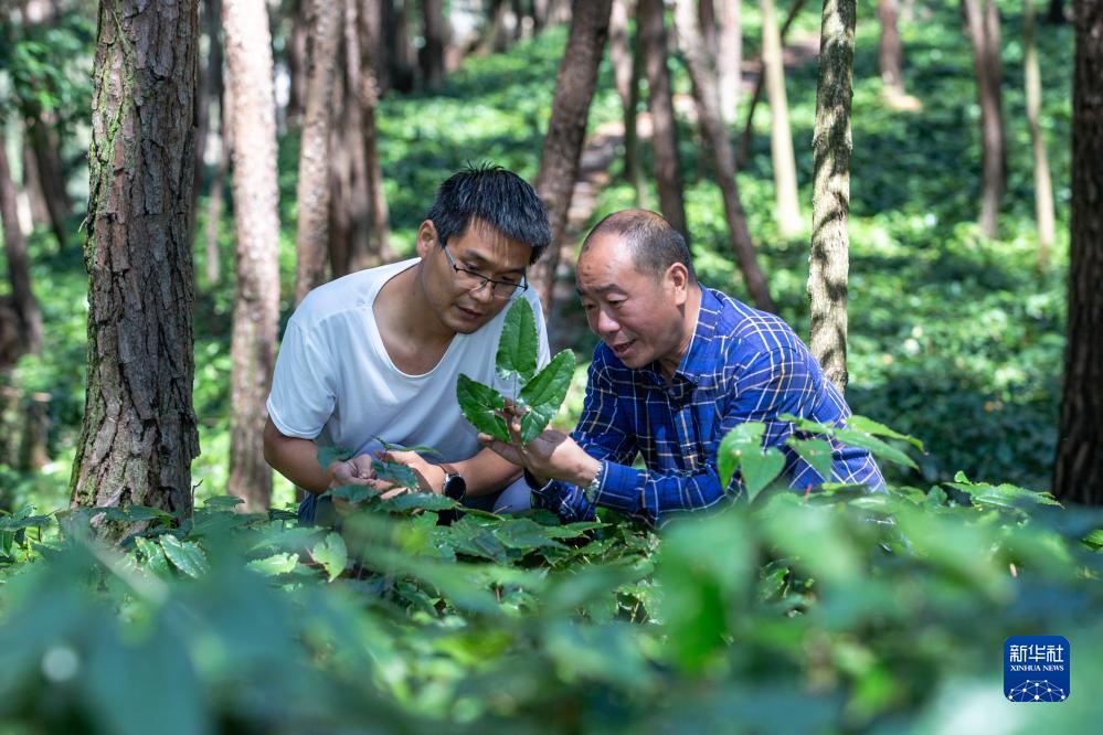 9月13日,在重慶市城口縣高燕鎮星光村箭葉淫羊藿種植基地,駐村干部了解箭葉淫羊藿的長(cháng)勢情況。新華社記者 儲加音 攝