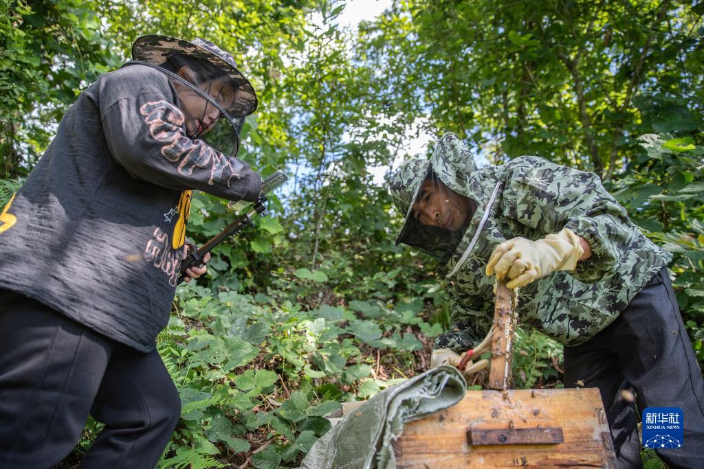 9月13日,在重慶市城口縣巴山鎮農民村,蜂農在采收蜂蜜。新華社記者 黃偉 攝