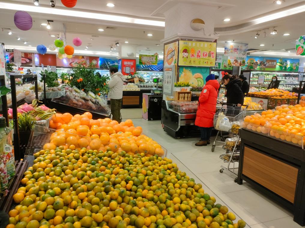 圖為哈爾濱哈爾信超市內,蔬菜、水果供應充足。新華社記者朱悅 攝