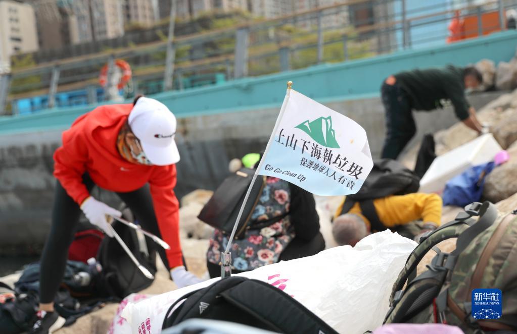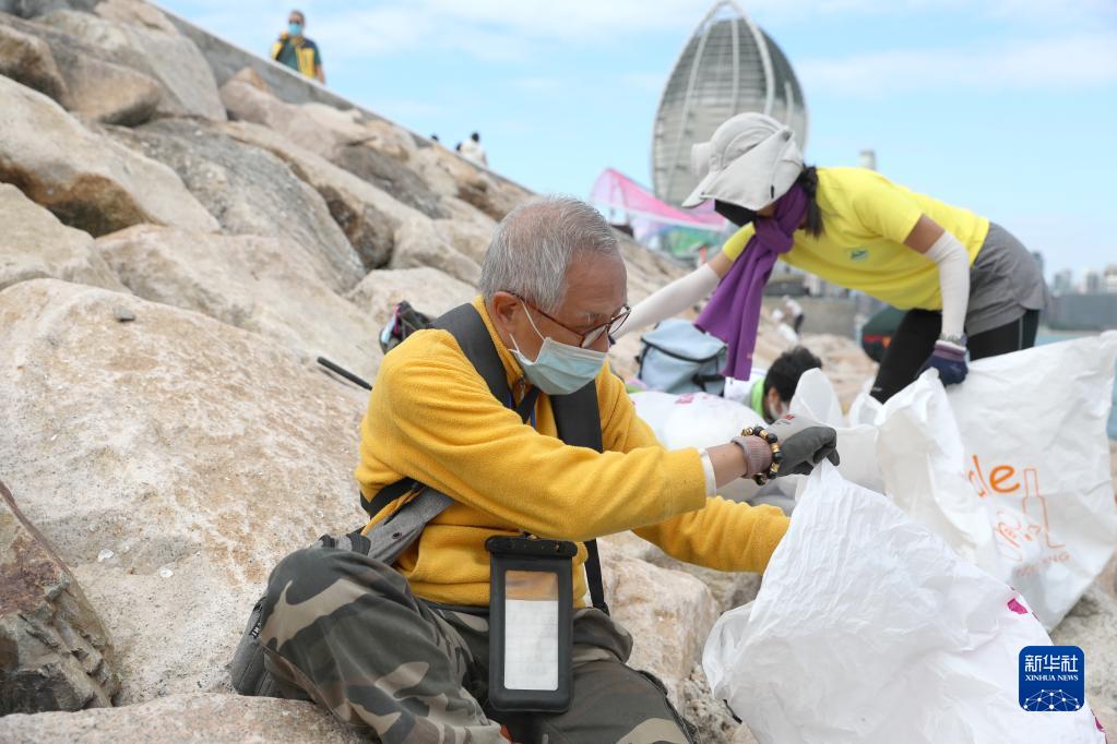 義工在海邊撿垃圾(2021年12月7日攝)。新華社記者 吳曉初 攝