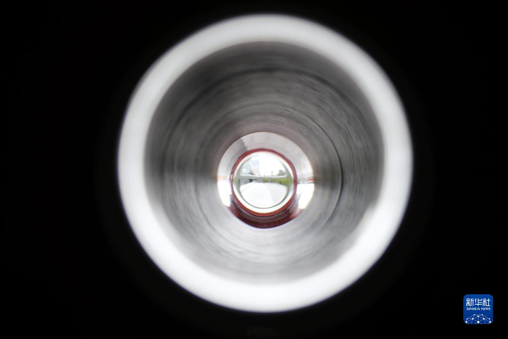 這是透過(guò)香港故宮文化博物館大門(mén)門(mén)釘看到的門(mén)前地面(2022年5月10日攝)。 新華社記者 王申 攝