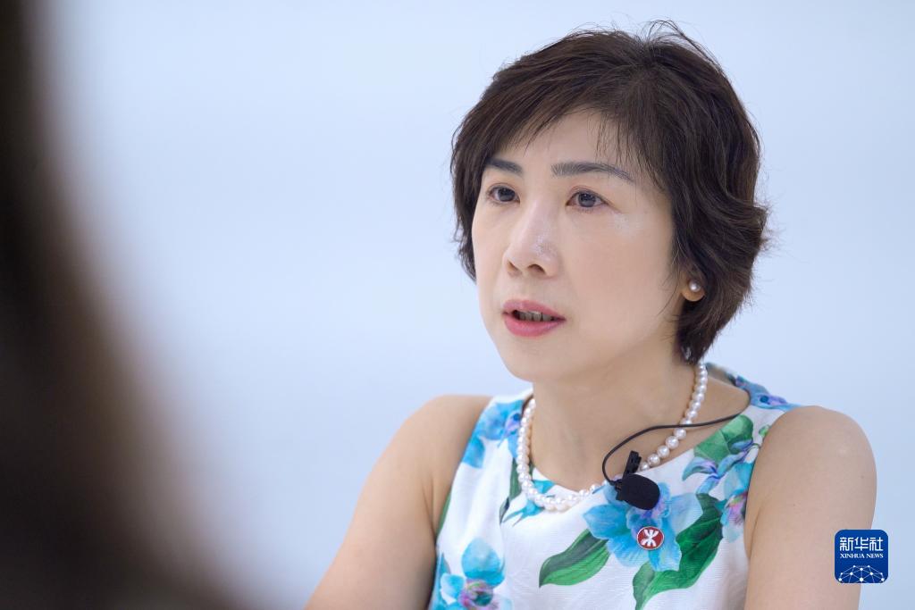 港鐵公司總經(jīng)理(市務(wù)及客戶(hù)體驗)梁靜雯接受采訪(fǎng)(7月12日攝)。新華社記者 龍鏡伊 攝