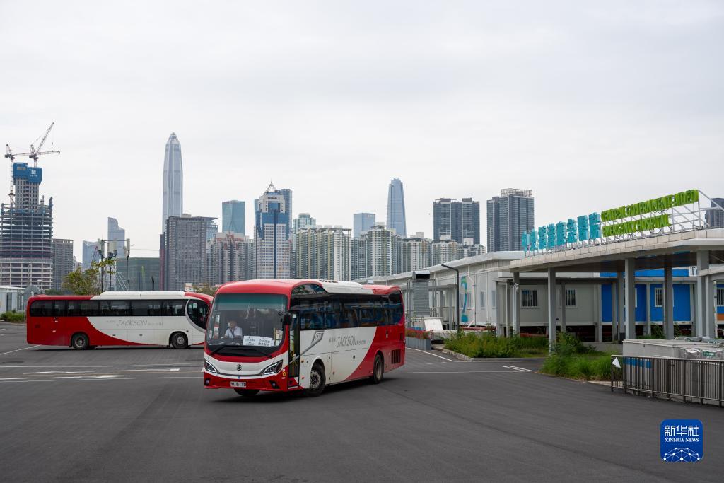 11月13日,免費接駁巴士運送病人抵達位于香港落馬洲河套區的中央援港應急醫院。新華社記者 朱煒 攝