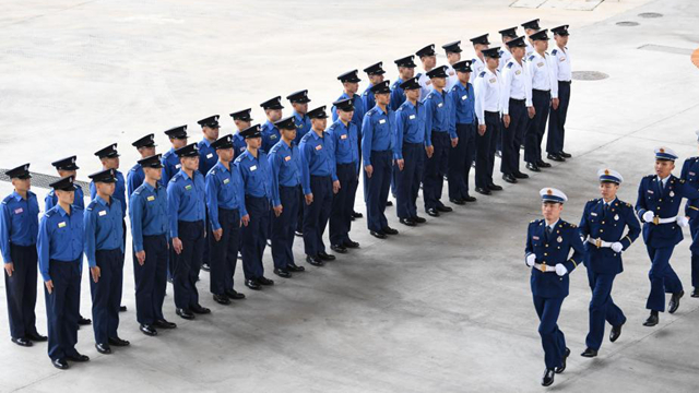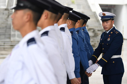 香港特區政府消防處學(xué)員在穗進(jìn)行中式隊列步操訓練