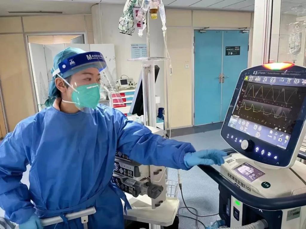 5月8日,呼吸治療師孟賽在ICU病房工作。新華社記者 余春生 攝