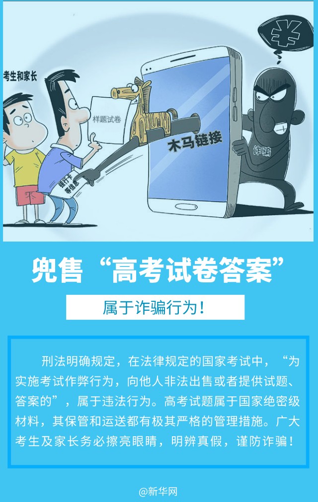 2022年高考即將到來(lái),有些不良機構或不法分子妄圖借高考之機牟取不法利益。近年來(lái),各地公安機關(guān)會(huì )同教育部門(mén),對各類(lèi)涉考違法犯罪活動(dòng)持續保持高壓嚴打態(tài)勢,本期法治課代表提醒廣大考生和家長(cháng)要增強法律意識,誠信考試,切勿心存僥幸。