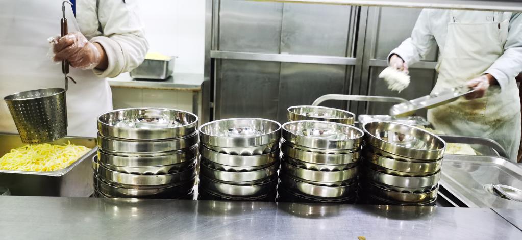晉城市第二中學(xué)校食堂中的面食按照大小份售賣(mài),學(xué)生可自主選擇。新華社記者 李紫薇 攝