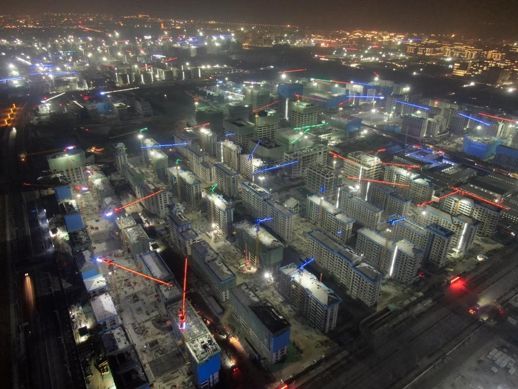 這是1月4日拍攝的雄安新區容東片區正在建設中的華望城項目夜景(無(wú)人機照片)。新華社記者 駱學(xué)峰 攝