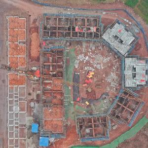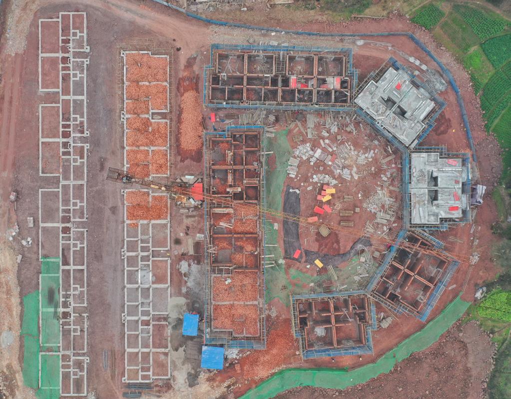 圖為1月20日拍攝的福集鎮魚(yú)目村聚居點(diǎn)建設現場(chǎng)(無(wú)人機照片)。 新華社記者劉坤 攝