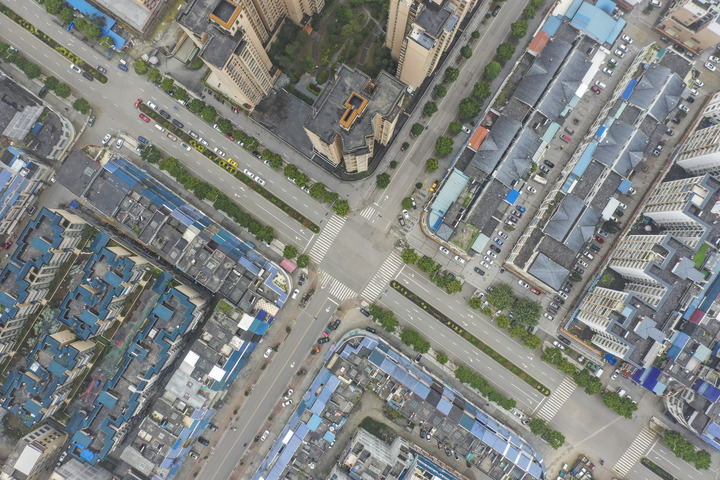 2月8日拍攝的廣西百色市德??h街景(無(wú)人機照片)。新華社記者 曹祎銘 攝