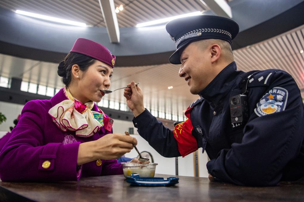 他們一個(gè)往南值勤,從重慶西站乘動(dòng)車(chē)去往春城昆明;一個(gè)向北值乘,在重慶西站乘智能“復興號”去往成都。