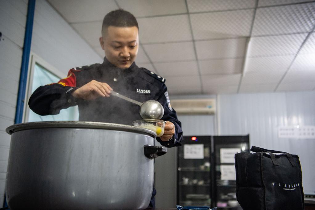 早上7點(diǎn),已經(jīng)換上黑色制服、完成出勤準備的祁?lèi)?,從單位食堂的鍋里,舀起最后一顆湯圓,裝進(jìn)為妻子準備的飯盒。