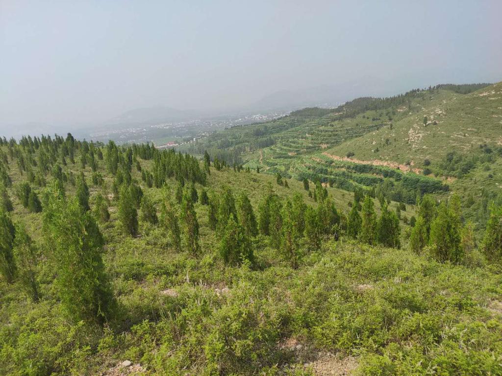 登上吳家山,一片綠色映入眼簾:腳下側柏蒼翠挺拔,黃櫨、榛子等點(diǎn)綴其間。極目遠眺,連綿的山頭郁郁蔥蔥。