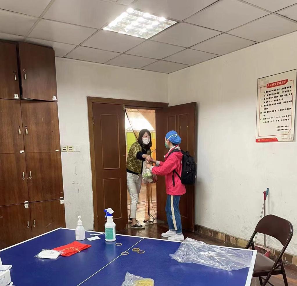 社區居民為即將離開(kāi)的醫務(wù)人員送來(lái)水果等物資。(受訪(fǎng)者供圖)
