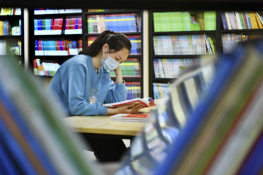 4月22日,四川省廣安市市民在一家書(shū)屋閱讀。新華社發(fā)(張啟富攝)