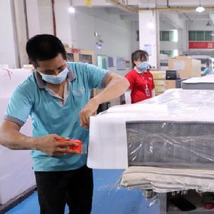 運時(shí)通(中國)家具有限公司員工正在做產(chǎn)品包裝(2022年4月27日攝)。新華社記者 黃國保 攝