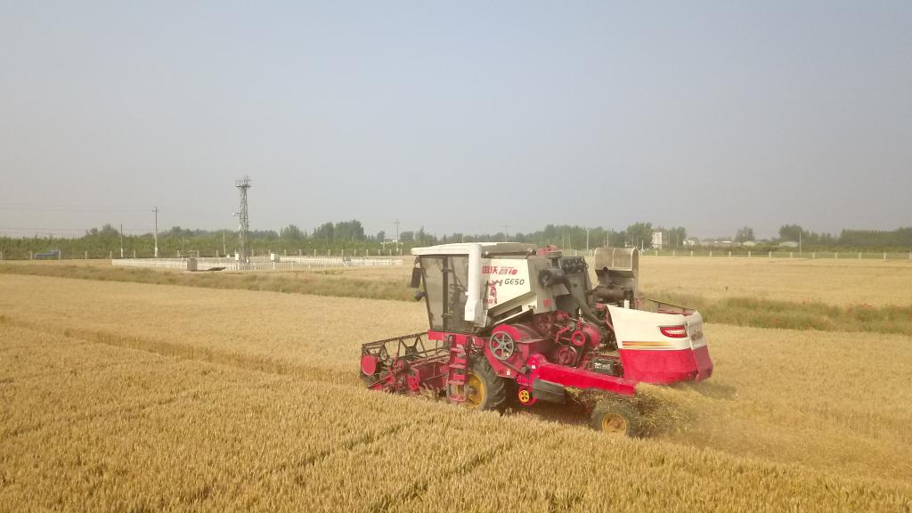 圖為在南皮縣,收割機正在收割小麥。(受訪(fǎng)者供圖)