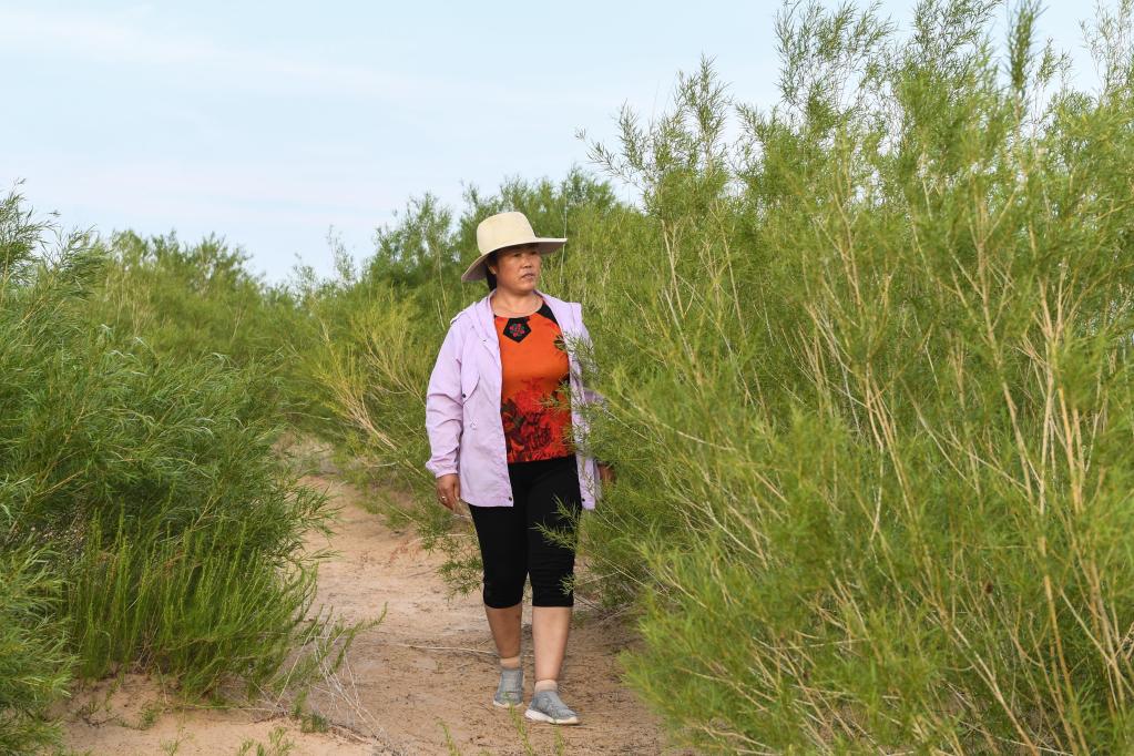 寶秀蘭查看沙地治理情況。(受訪(fǎng)單位供圖)