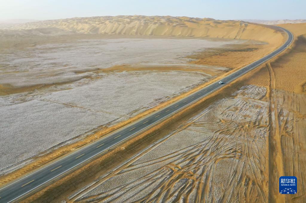 “我們解決了沙漠地區風(fēng)積沙路基填筑關(guān)鍵技術(shù)難題,這樣的工藝充分利用了沙漠中現有的材料,使修路成本降低不少?!敝袊唤ㄐ陆厩疑衬讽椖拷?jīng)理王云飛說(shuō)。