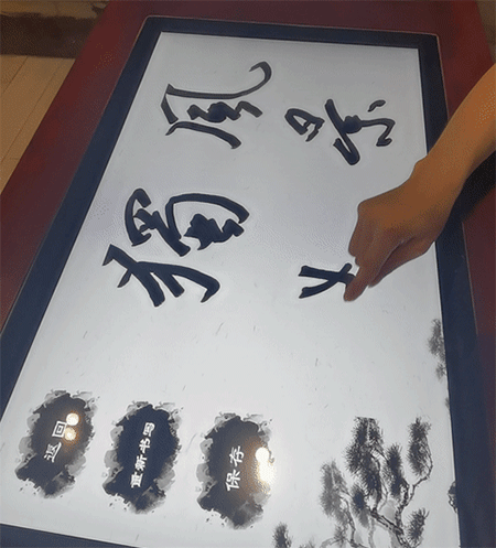 江西會(huì )昌文武壩村“風(fēng)景獨好園”中,游客通過(guò)互動(dòng)體驗裝置書(shū)寫(xiě)“風(fēng)景獨好”四字。 新華社記者 賈伊寧 攝制