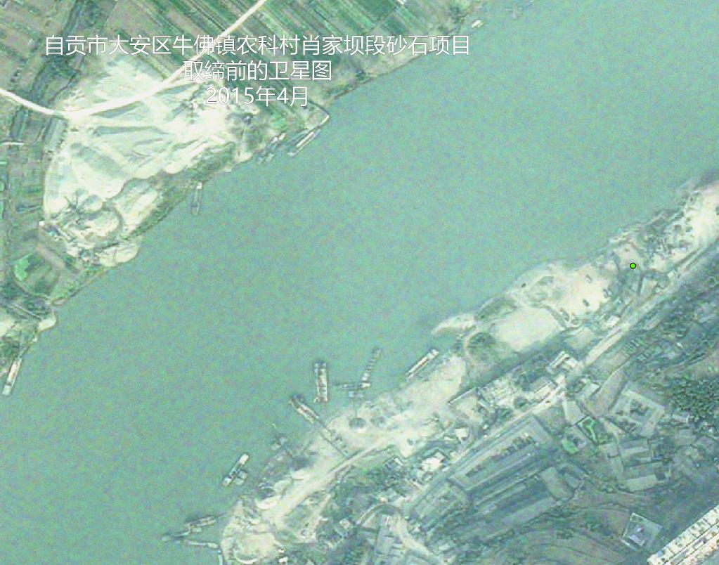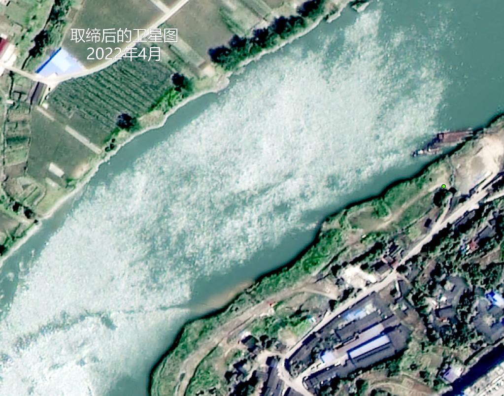 自貢嚴格規范沱江河段大小船只的采砂行為,上圖為河砂石料場(chǎng)取締之前的衛星圖,可以看到沱江邊停滿(mǎn)采砂的大小船只。下圖為項目取締后的衛星圖,河砂石料場(chǎng)不見(jiàn),沱江兩岸植被逐步得到恢復,江水奔涌而去。