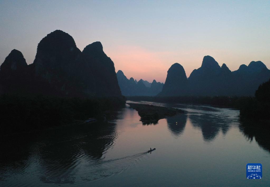 這是在廣西陽(yáng)朔縣興坪鎮拍攝的漓江風(fēng)光(2020年5月19日攝,無(wú)人機照片)。新華社記者 周華 攝