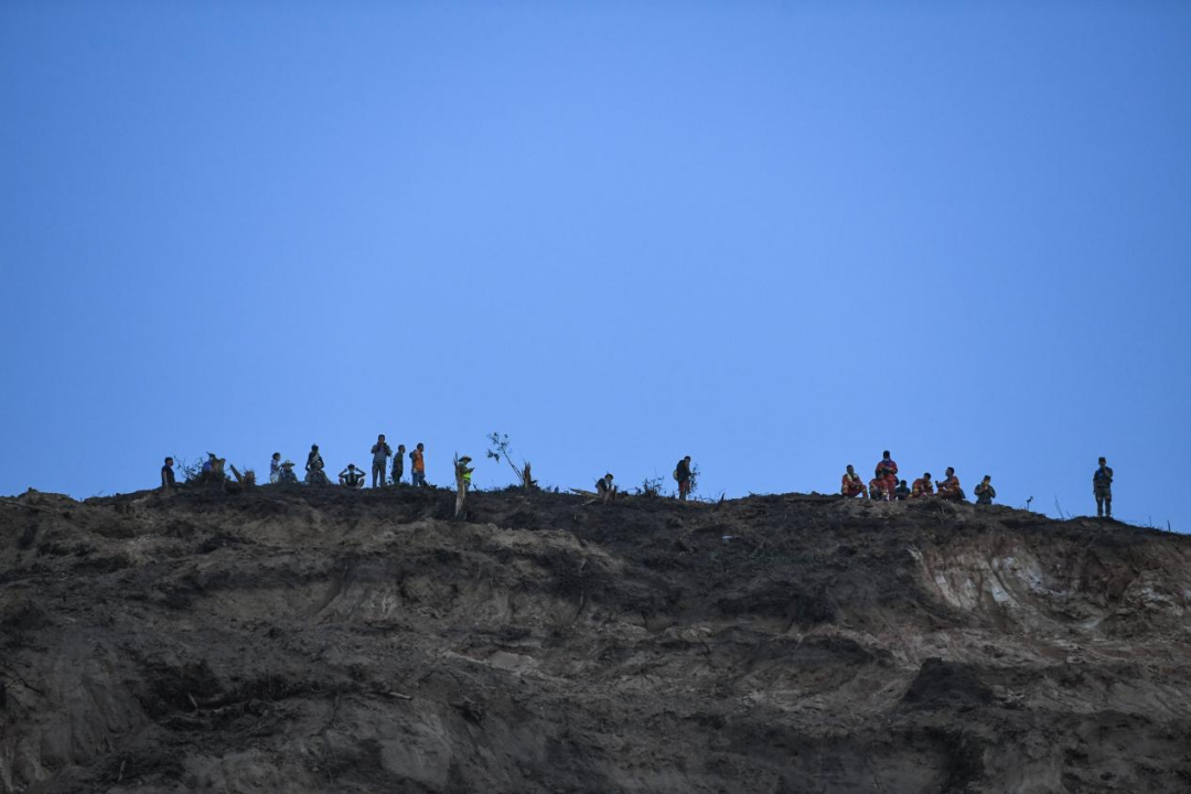 這是8月25日晚在隔離帶山頂拍攝的救援人員。